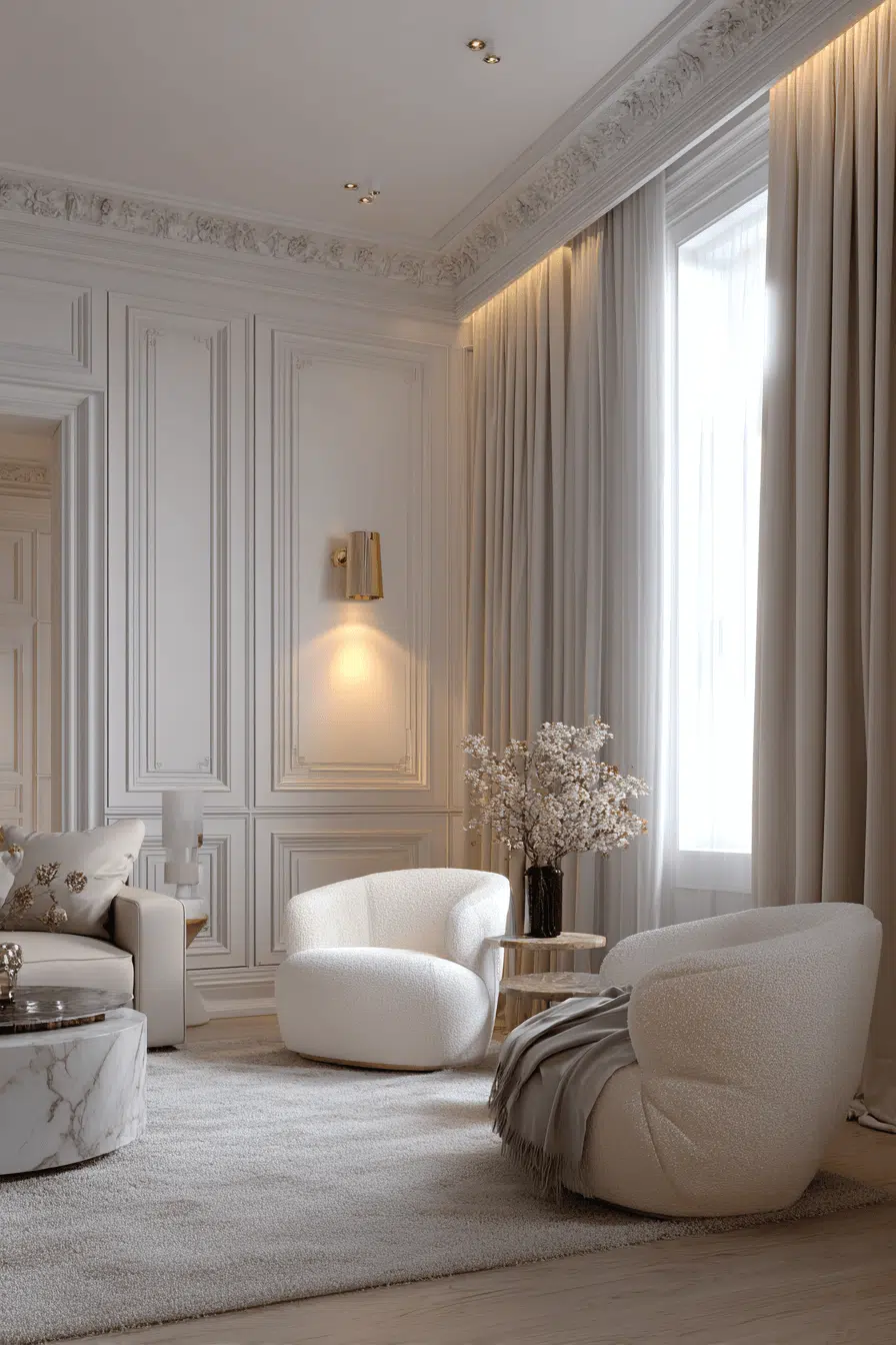 🚫 Avoid This: Avoid mixing too many metallic finishes or adding bold patterns that compete with the understated elegance.