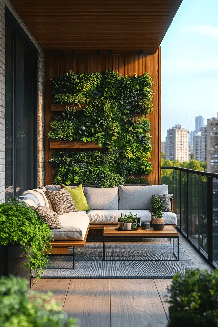 Turning your balcony into a vertical garden creates a lush escape without crowding the floor. Among the most space-savvy small apartment balcony ideas, vertical planting maximizes greenery while maintaining openness. Mounted planters and tiered shelves create depth and visual interest. Mixing herbs, flowers, and trailing plants adds variety and texture. This approach also increases privacy while refreshing the air around you.